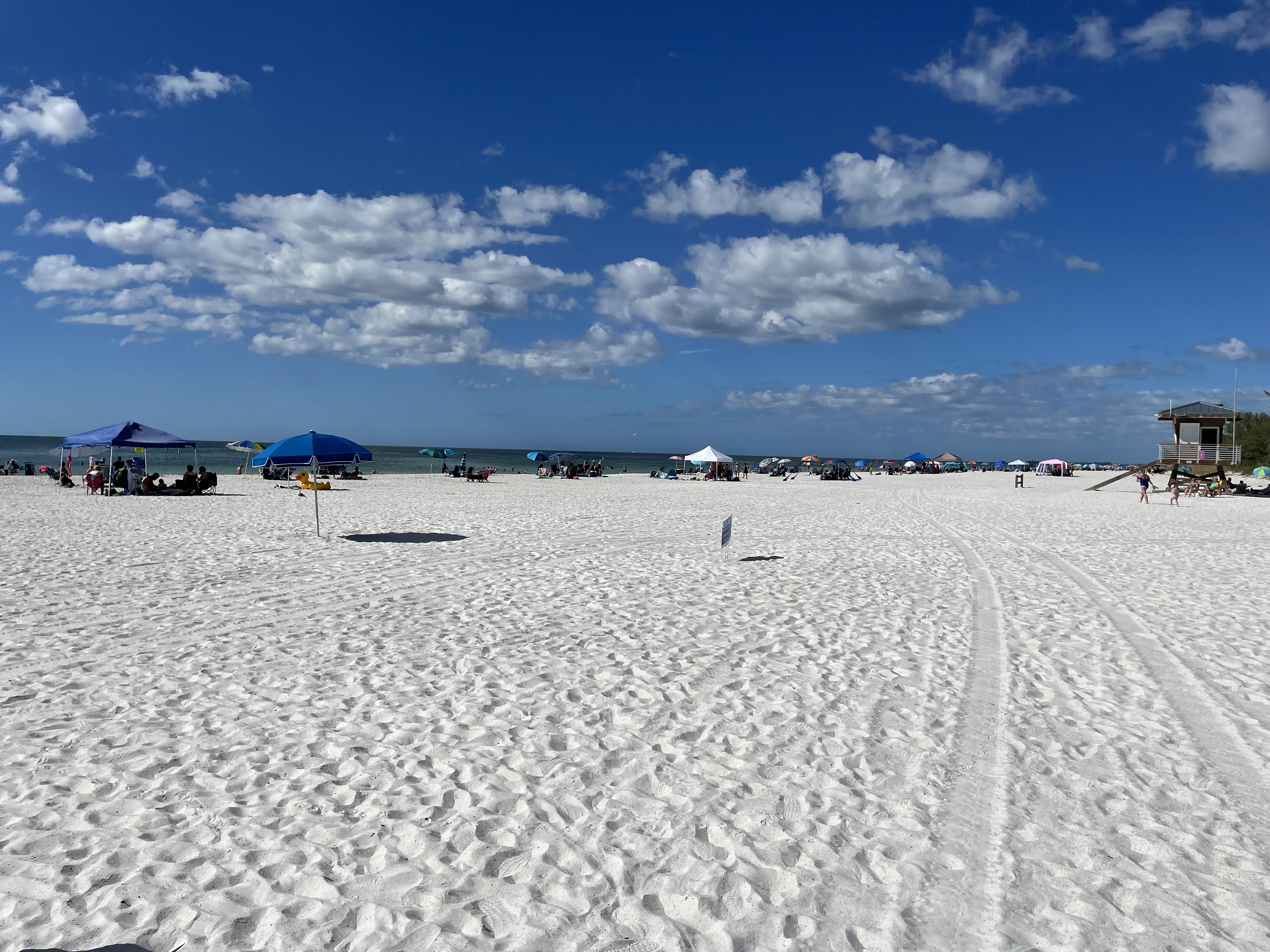 Vanmorgen raar wakker geworden. Ik keek op de wekker en zag dat het kwart voor acht was, voor mij een mooie tijd. Tijdens het bijwerken van dit verslag zie ik dat de MacBook en mijn iPhone op kwart voor zeven staan. Blijkt Amerika ook zomertijd te hebben en laat die nu afgelopen nacht te zijn beëindigd….dat stond niet in de brochure. Na het ontbijt ons appartement afgesloten en richting de I-75 gereden. We hebben onze host deze dagen niet gezien. Op zich prima, maar ik zou mijn gezicht altijd wel even laten zien, al is het maar voor een welkomstwoord of om te vragen of alles naar wens was. Op de I-75 was het rustig dus het gas kon er lekker op, de Ford is een lekkere reisauto. Ter hoogte van Ft. Myers reden we door de baan die Ian had gevolgd en zagen we wel wat schade aan reclameborden of een enkele omgewaaide boom, maar verder viel het allemaal wel mee. Nu ligt er op de Amerikaanse autosnelwegen altijd wel veel rotzooi op de vluchtstrook, nu duidelijk wat meer. Dit terwijl in een volgende county de weg (incl. berm) al helemaal schoon was en gemaaid. Zoals eerder aangegeven hoefden we niet helemaal door het binnenland te rijden, de I-75 was gewoon open en berijdbaar. Aangekomen in Sarasota Beach hebben we de auto in een parkeergarage gezet en hebben we een rondje door het centrum gelopen. Grappig ook om even op de plaats (St. Armands Circle) te staan waar mijn “TouTube held” Dovydas normaal de sterren van de hemel speelt. Dovydas is een geweldige gitarist die met voorbijgangers geweldige muziek maakt. (filmpje). Helaas mag hij hier niet meer zo vaak spelen, een plaatselijke agente had er een sport van gemaakt hem te dwarsbomen. Verhaal gaat rond, dat een familielid van haar daar in de buurt een winkel heeft en zijn muziek/optredens niet pruimt. Bijzonder jammer, want het is een grote artiest. Na Sarasota zijn we verder de HW789 afgezakt richting Anna Maria Island. Na Longboat Key kwamen we de (gratis) parkeerplaats tegen van Coquina Beach. We hebben daar de auto in de schaduw geparkeerd, twee bedjes en een (broodnodige) parasol (30 USD) gehuurd en de rest van de middag heerlijk op het strand gelegen. Het water van The Gulf of Mexico was heerlijk warm, schoon en helder. Net na vier uur reden we daar weer weg om met een boodschappenstop naar ons hotel Tropical Inn and Suites in Clearwater te rijden. Dit bleek toch nog een kleine twee uurtjes sturen te zijn. Vanuit Tampa naar Clearwater reden we over de Campbell Causeway, waar op de secundaire weg zich honderden jongeren hadden verzameld om te Chillen. Morgen kijken we even wat het weer doet, we willen in ieder geval via de Circle B Bar Reserve rijden. Daar schijn je fijn te kunnen wandelen tussen de Alligators en dat lijkt ons wel wat. Deze meneer (filmpje) zwemt daar ook rond. Dit is geen Alligator meer, maar een Dinosaurus …….hahaha
