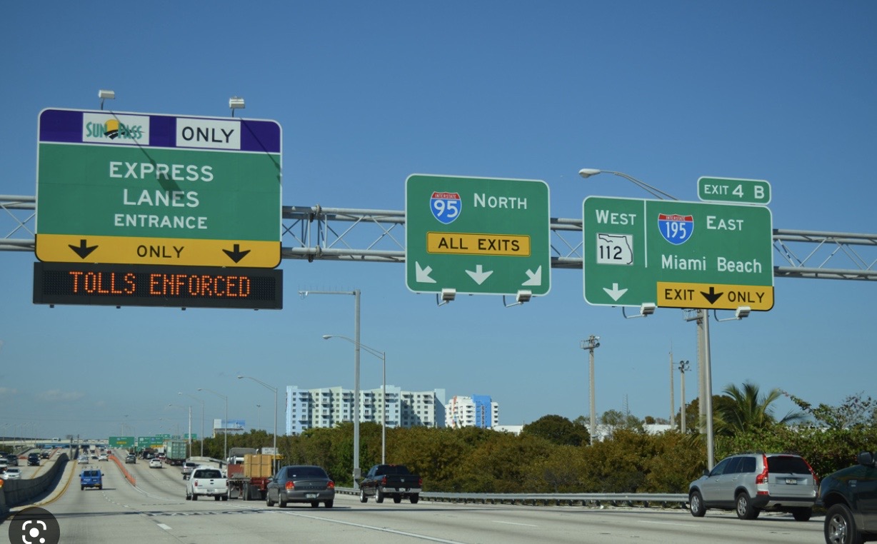 Foto’s van het Holiday Inn zien er tropisch uit, maar het hotel ligt wel midden in de stad Miami en naast een autosnelweg I-75 (Palmetto Express Tolway) ……..prima! Deze I-75 heeft “Express Lanes”, waar je tolplichtig voor bent, de overige rijstroken zijn tolvrij.